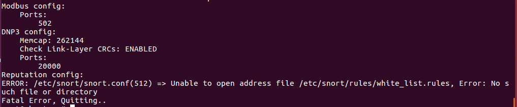 - touch /etc/snort/rules/white_list.rules --> 파일이 없어서 snort 실행 시 에러 발생
