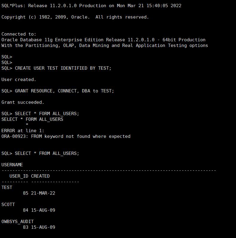 | vi .bash_profile export ORACLE_BASE=/app/oracle export ORACLE_HOME=$ORACLE_BASE/product/11.2.0/dbhome_1 export ORACLE_SID=orcl export NLS_LANG=AMERICAN_AMERICA.AL32UTF8 export LD_LIBRARY_PATH=$ORACLE_HOME/lib:/lib:/usr/lib:/usr/local/lib export PATH=$PATH:$ORACLE_HOME/bin # alias alias ss='sqlplus / as sysdba' |