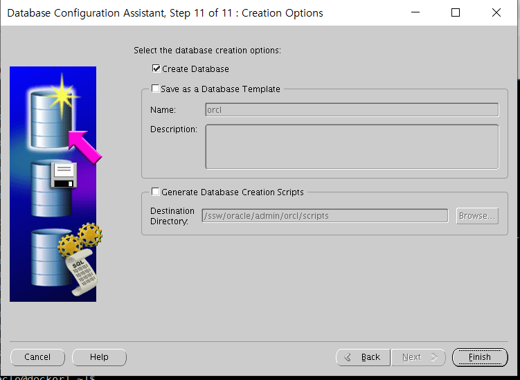 | [root@localhost ~]# /usr/oracle/oraInventory/orainstRoot.sh Changing permissions of /app/oraInventory. Adding read,write permissions for group. Removing read,write,execute permissions for world. Changing groupname of /app/oraInventory to dba. The execution of the script is complete. [root@localhost ~]# /usr/oracle/app/product/11.2.0/dbhome_1/root.sh Running Oracle 11g root.sh script... The following environment variables are set as: ORACLE_OWNER= oracle ORACLE_HOME= /app/oracle/product/11.2.0/dbhome_1 Enter the full pathname of the local bin directory: [/usr/local/bin]: [ENTER]키 누르세용 Copying dbhome to /usr/local/bin ... Copying oraenv to /usr/local/bin ... Copying coraenv to /usr/local/bin ... Creating /etc/oratab file... Entries will be added to the /etc/oratab file as needed by Database Configuration Assistant when a database is created Finished running generic part of root.sh script. Now product-specific root actions will be performed. Finished product-specific root actions. |